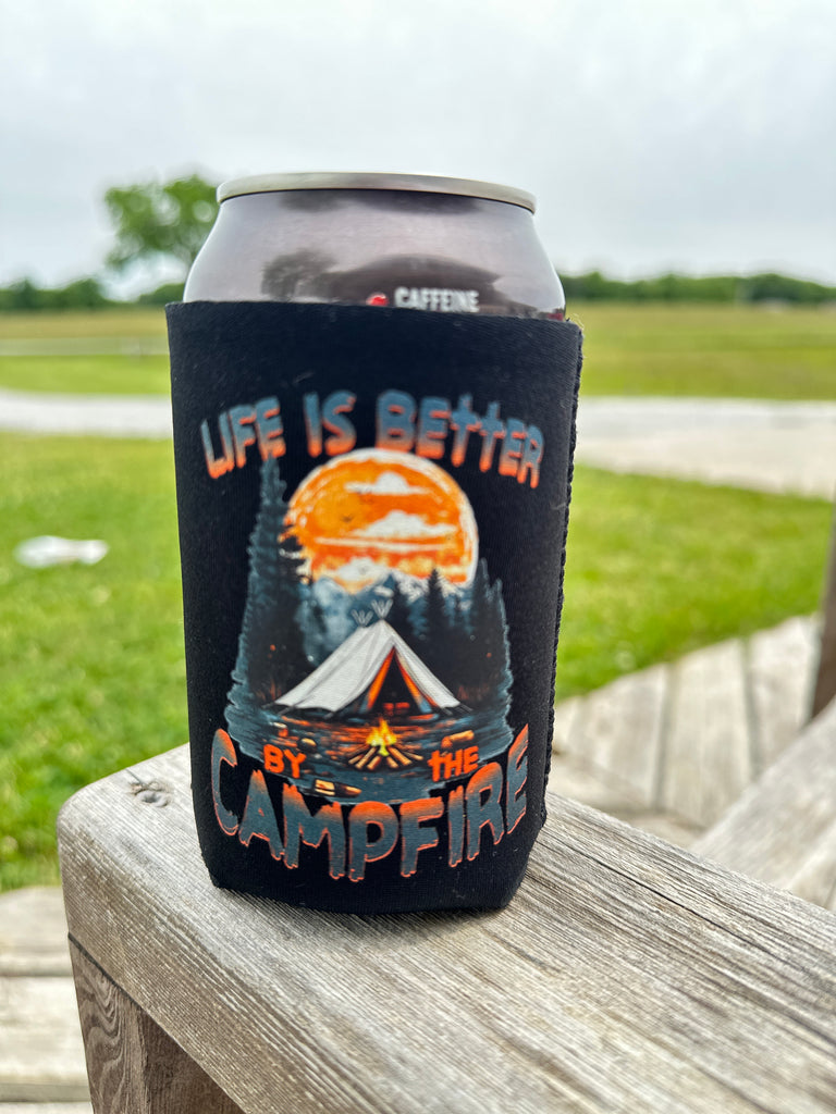 Foam Neoprene Can Holder Koozie in black, perfect to keep that can cold by the campfire in the backyard or while camping.