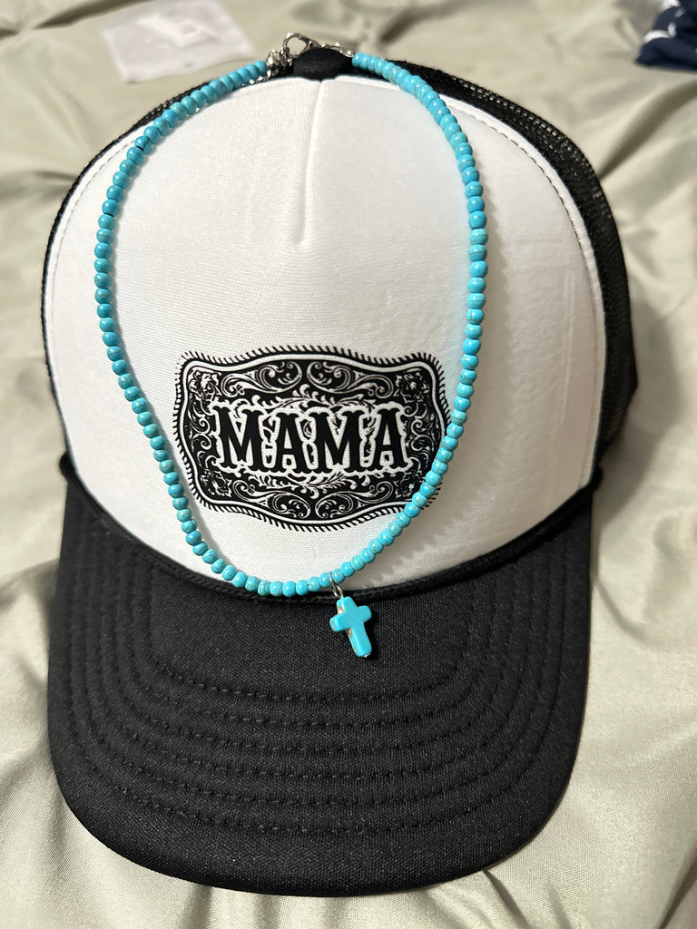Boho Turquoise Beaded Cross Choker adjustable necklace